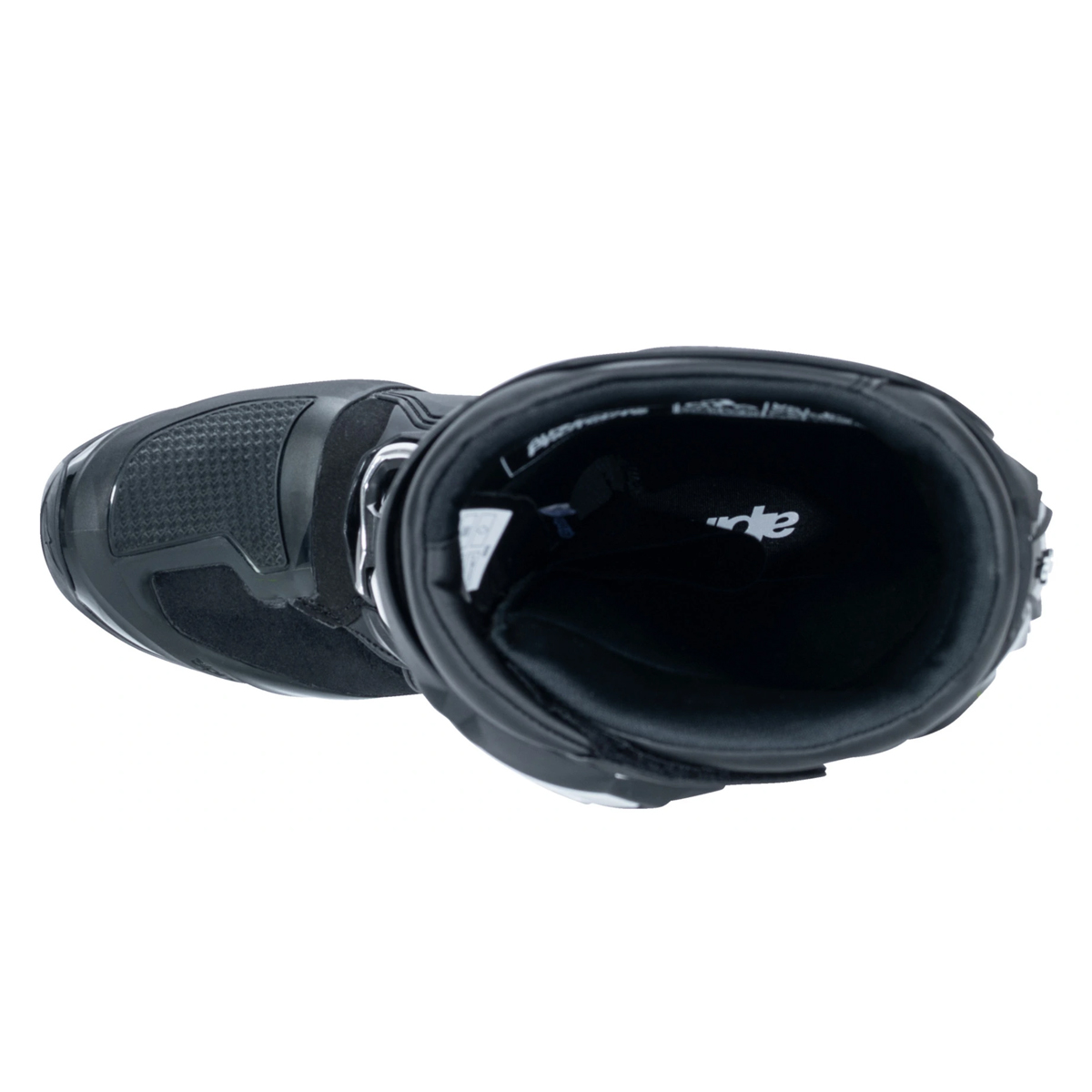 Specific design on the medial sidewall to improve sensitivity, support and grip on the bike, while increasing the boot’s protection and durability.